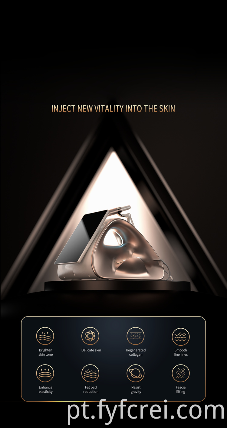 Um instrumento que não causa feridas. O princípio utiliza um sistema de ultrassom pulsado ultramicro para obter uma combinação de tecnologia de ponto, linha e superfície para obter um modo completo 360: efeito perfeito de levantamento e aperto multicamadas antienvelhecimento de camada completa, preciso, confortável, rápido e durável. A partir de agora, você poderá cuidar de seus clientes em sua própria casa ou em um salão de beleza. A seguir, você proporcionará a você ou a seus clientes uma bela experiência de enfermagem.